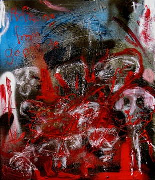 Profiting from genocide is evilMixed media on board70x50cm£600/720€/$900profits donated to Searchlight